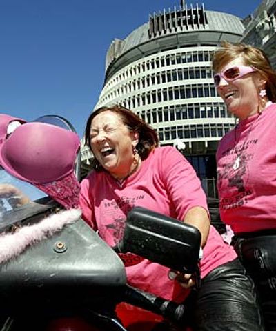 In April 2008, after 6 months of organisation and phenomenal sponsorship and support from the local and national business communities, Maxine led a group of motorcyclists - The Herceptin Riders - around the North Island of New Zealand for a full week in a high-profile, nationally covered event aimed at collecting signatures to formally call upon the prevailing Labour government to fund the full course of Herceptin. At that time, despite extensive lobbying by various breast cancer support groups, that government had steadfastly refused to fund the full course of treatment for women diagnosed with HER2+ breast cancer - one of the most virulent and accelerated forms of the disease.